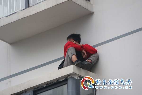 據了解,該男孩為留守兒童,今年14歲,在丹中上七年級,父母在外打工,自己跟爺爺住在4樓。上午放學回家發(fā)現自己沒有帶鑰匙,而爺爺已外出做事,無奈之下選擇鄰居家緊挨著窗臺進行攀爬,爬至3樓窗臺上檐,發(fā)現太高了不敢再往上爬,但也下不來,所以被困蹲坐在3樓狹窄的窗臺上檐邊。(譙石)