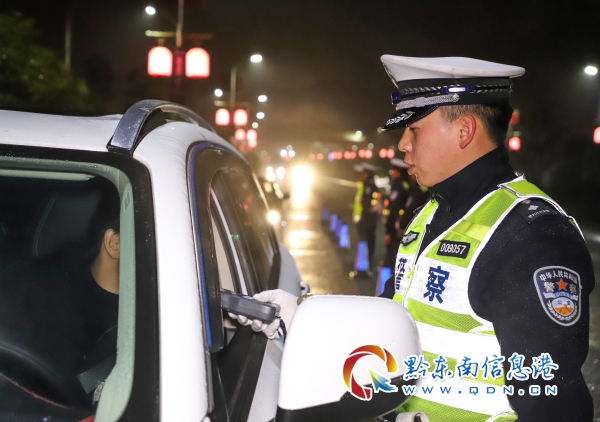 本網訊 12月24日,平安夜,貴州省丹寨縣交警大隊組織警力在轄區開展平安夜酒駕查緝行動,堅決對酒駕違法行為實行“零容忍”工作態度,切實形成嚴管高壓態勢,讓酒后駕駛成為駕駛人不想碰、不愿碰的紅線,進一步鞏固了轄區冬季交通安全防線,預防道路交通事故發生。(陸德華)