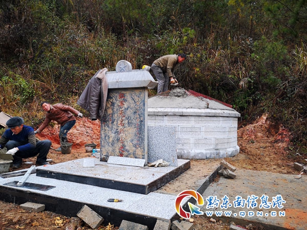 工人們在新州鎮(zhèn)太翁村修繕紅軍烈士墓(楊廷蘭 攝)