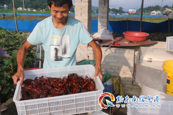 談到小龍蝦基地創建過程,負責人鄧華明說:“我做過服裝、跑過運輸、干過工地,在外務工的這些年親眼目睹龍蝦市場的火爆,結合老家農豐村水質好、地勢平坦開闊等適合養殖小龍蝦得天獨厚的優勢,毅然決定回家搞小龍蝦養殖,為此,還特意到湖北學習養殖、飼養、管理等知識。2017年下半年墊資50余萬建小龍蝦基地,可以說是傾家蕩產的全部投入到該項目中,第一次失敗了,可喜的是,經過努力之后慢慢有起色。2019年擴建55畝,每畝投資減少到2017年的一半,畝產可達500斤左右,主要銷往余慶、凱里等地,剛捕撈就銷售一空,根本不用擔心銷路”。