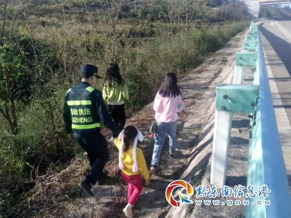 路政員下車詢問了其中一個孩子得知,原來這幾個小孩子家就在附近,在途經(jīng)此處的時候卻因為不熟悉環(huán)境,而在此地迷了路。路政員了解情況后,與孩子們細(xì)心交談,了解到了孩子們家的所在地,發(fā)現(xiàn)就在此地的不遠(yuǎn)處,而幾個孩子的年齡太小,安全意識薄弱,路政員擔(dān)心孩子們會圖方便而走到高速公路上來造成安全隱患,于是決定一路將這幾個迷路的孩子安全送到家。