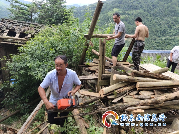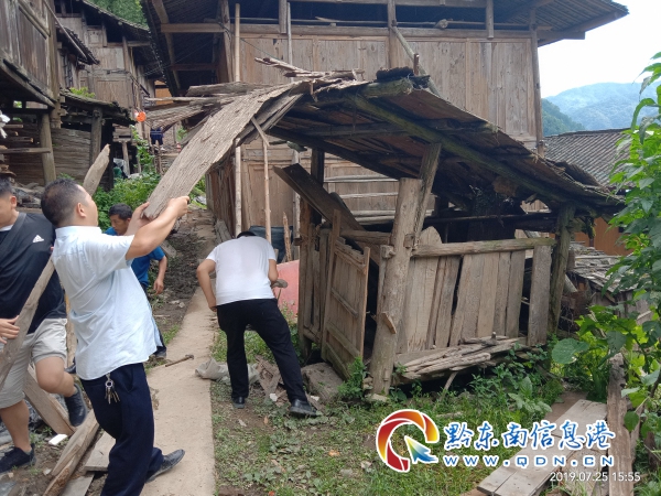 懂熬村攻堅隊員正在拆除舊棚