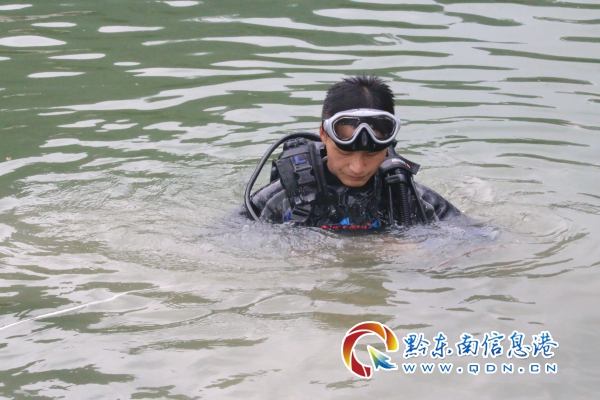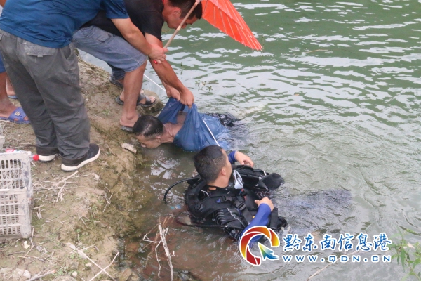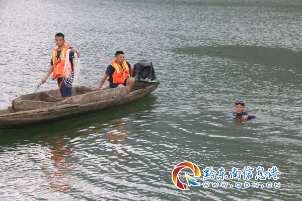 消防救援人員到達現場后,現場河岸已經圍滿了圍觀群眾。根據現場實際情況,指揮員迅速制定打撈方案,為安全起見,大隊選派水性較好,具有一定打撈經驗的兩名消防員,佩戴全套安全設備后利用漁船在河面進行搜索;一名潛水員穿好潛水裝備進行水下搜索。經過潛水員不斷的搜索,13時28分成功在離河岸10米、水下六米的位置將遇難者打撈上岸。