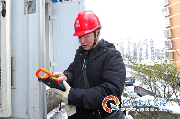 2019年1月1日,凱里供電局城區分局配網維修中心班冒雪驅車前來“金泉一品”小區搶修電路
