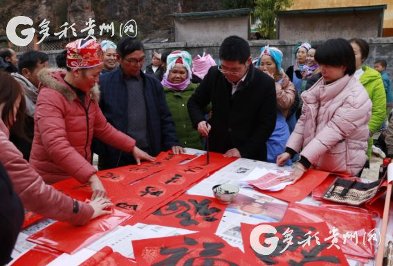 1月16日,凱里市灣水鎮(zhèn)米薅村熱鬧非凡,年味十足,村民們迎來了一群特殊的客人,貴州省貴陽市文聯(lián)組織書法家們來到滬昆鐵路凱里車務段沿線的苗族村寨及公益性慢火車上,開展“新時代、新春聯(lián),送萬福、進萬家”文化上車、下鄉(xiāng)義務送春聯(lián)活動。活動還吸引了多家媒體記者前來采訪報道。