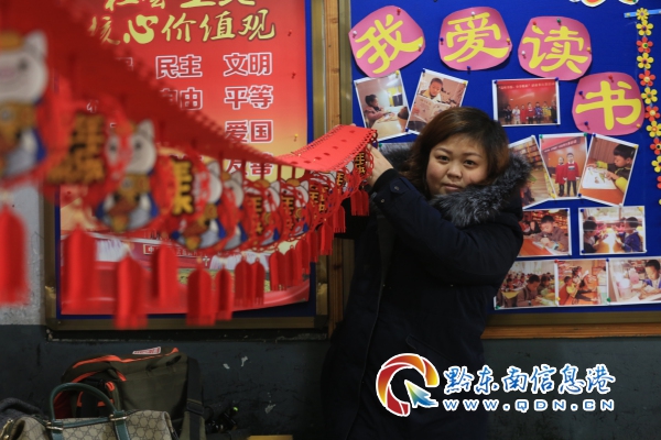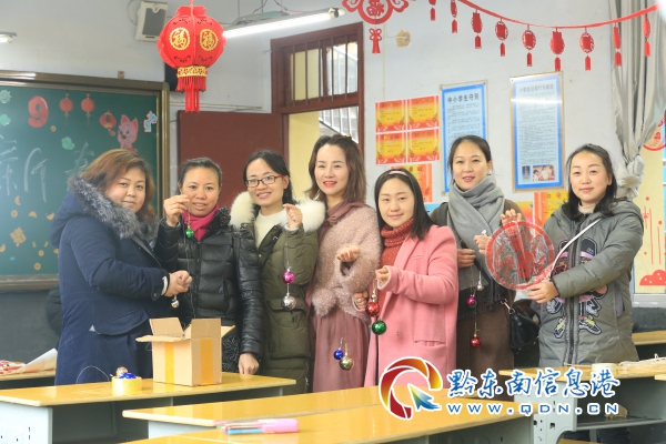大紅燈籠高高掛,快樂(lè)福娃窗上貼。活動(dòng)中,老師、學(xué)生及家長(zhǎng)們積極互動(dòng),用自籌的飾品將教室裝扮一新。