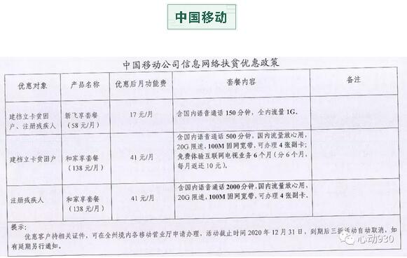 在價(jià)格方面,舉個(gè)例子由中國(guó)移動(dòng)針對(duì)建檔立卡貧困戶、注冊(cè)殘疾人推出了價(jià)格為58元/月的新飛享套餐,優(yōu)惠后月功能繳費(fèi)僅需17元/月包含國(guó)內(nèi)語(yǔ)音通話150分鐘,全內(nèi)流量1G,價(jià)格優(yōu)惠了一半以上。