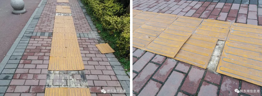“這些都是直接貼上去的,太容易壞了。”途經市民王女士說,建盲道的初衷是為了方便盲人出行,但邊角翹起或整塊脫落,對普通市民出行都會造成影響。