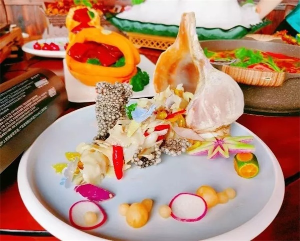 餐廳入眼盡是獨具特色的民族建筑、圖案、飾品,傳統與現代,民族與時尚完美融合,裝飾高端大氣,民族風情濃郁。