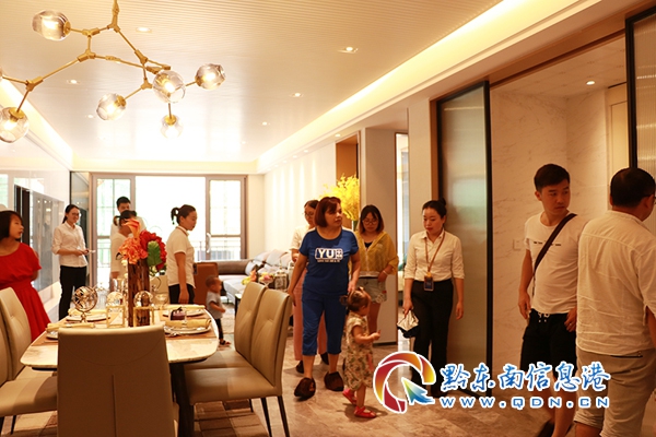 樣板間圍滿了充滿好奇的看房者,大家都被眼前的精致裝修與精心布置所吸引,爭相拍照,流連忘返,并對照戶型圖,細心品鑒每一個房間。
