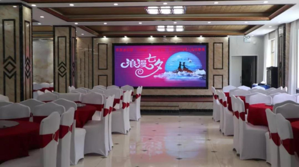 8月7日當天是七夕情人節(jié),小編在現(xiàn)場看到,顯示屏播放的畫面是關(guān)于酒店升級改造順利完工,和關(guān)于七夕祝福的內(nèi)容,畫面畫質(zhì)高清,而且很有氣勢。