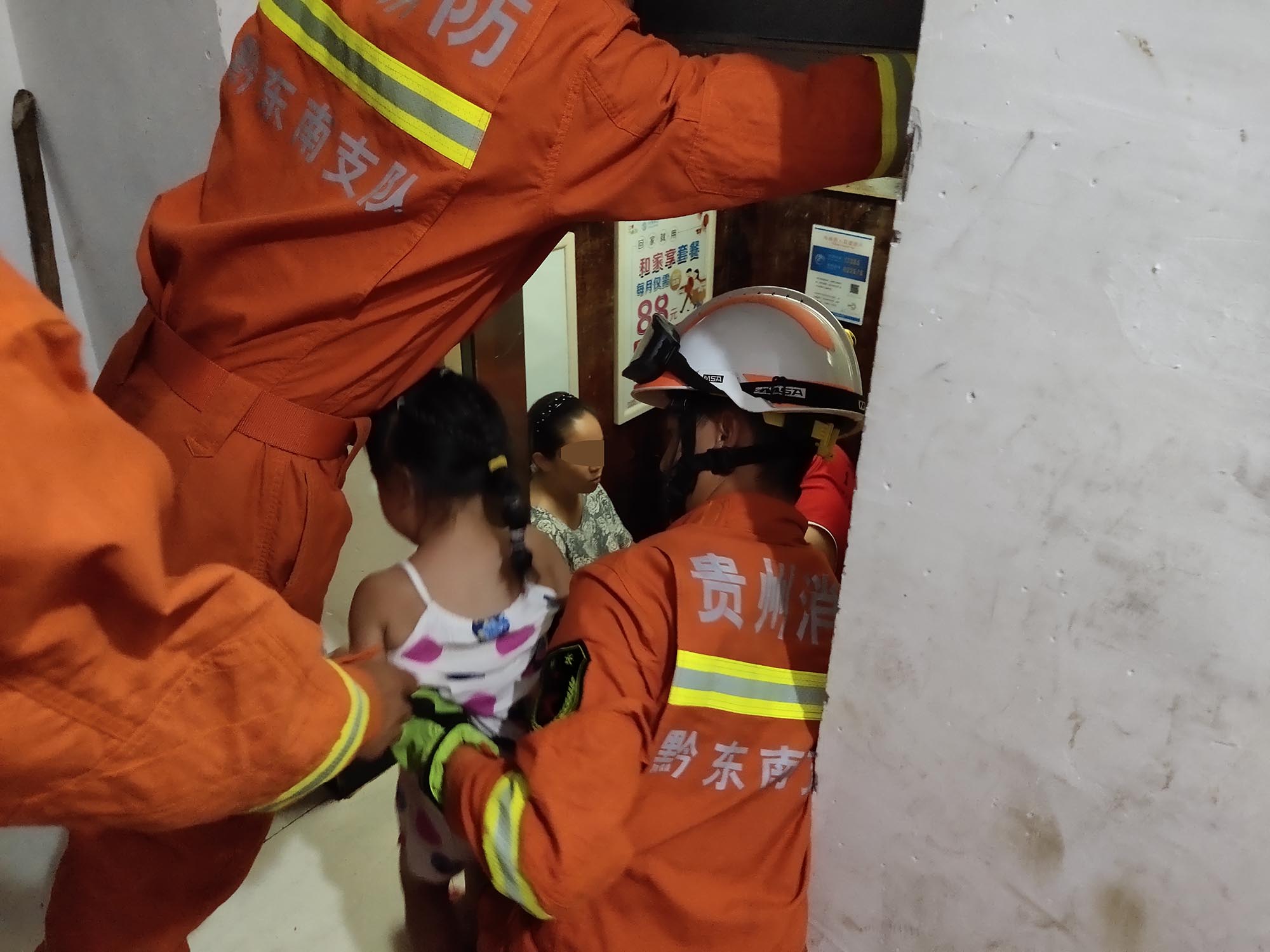 救援人員到達現場后,發現事故電梯停滯在15樓,通過電梯門可以看到被困人員為3名小孩、1名孕婦和2名中年男子。救援人員立即使用電梯門鑰匙把門打開,順利救出6名被困人員。