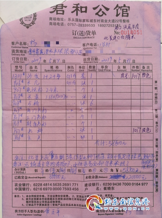 我在君和公館的購買協議就是一張普通的訂貨單,而不是標準的購買合同,崔經理解釋樂從賣家具都是這樣的,出于對他的好感和信任,我就簽了,也在協議上面約定了相關要求。但我告訴你,采取這些措施這些都沒用。