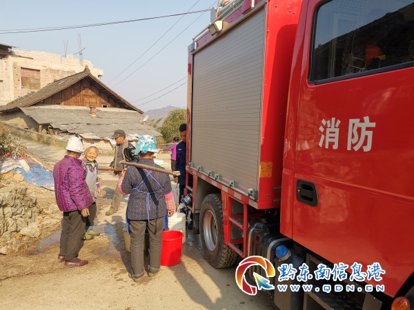 當凱里大隊消防車開進馬坪組、楊家山組,村民們十分高興,紛紛拿出家里所有的桶、盆等用來儲水,遇到有老人出來取水時,指戰員主動上前幫忙抬水、送水。