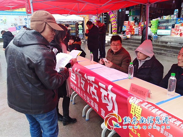 本網訊 春節期間是大批農民工返鄉和高校畢業生回家探親的季節。正月初八上午,麻江縣汽車站廣場上已是人才濟濟,雖然陰雨綿綿,但春意融融,麻江縣2019年勞務協作大型人才專場招聘會正在這里舉行,凱里經濟開發區人力資源局應邀組織轄區內7家企業參加此次招聘會,招聘崗位涵蓋家政、環衛工、園藝工、信息、機械、物業、電子、會計等,直接提供就業崗位398余個。