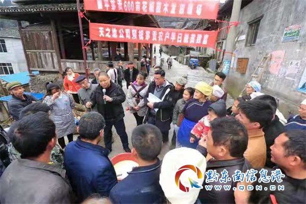 本網訊 3月15日,黔東南州天之地農林發展有限公司7萬株花椒苗木發放儀式在黎平縣茅貢鎮寨頭村舉行。