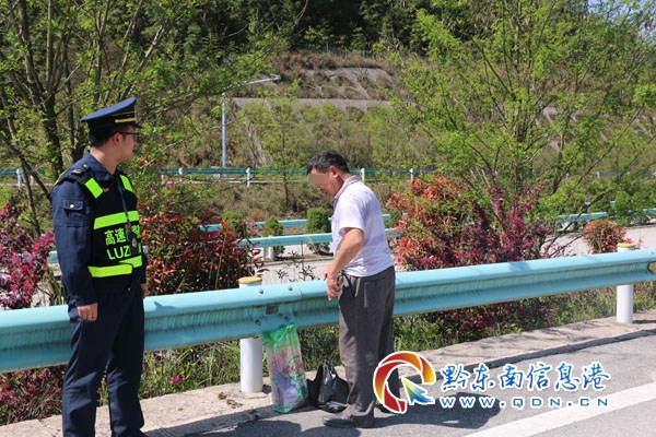 本網訊 4月7日下午15點黎平路政執法大隊路政員開展巡查時,發現在距離S15松從高速K11+500黎平服務區下行出口匝道兩百米處,有一名男子站在原地四處張望,路政員見此情景立刻將車停在安全位置,急忙下車詢問情況,經詢問該男子是要高速公路對面的山上掛親,他準備圖方便橫穿高速抄近道。路政員了解情況后,對該男子進行批評教育,現在是節假日返程高峰期,車流量很多,這樣橫穿高速公路非常危險,這樣不僅危及個人生命安全,也給行駛在高速公路上的司乘人員造成嚴重的安全隱患。男子聽到路政員這樣說,也意識到自己的錯誤,答應以后不會在圖方便橫穿高速公路。最后路政員指引該男子向黎平服務區的下穿涵洞方向走去。