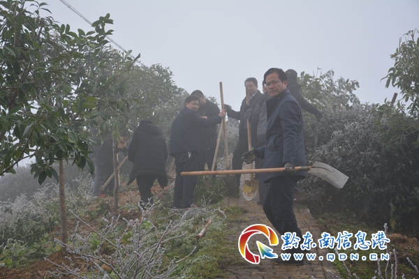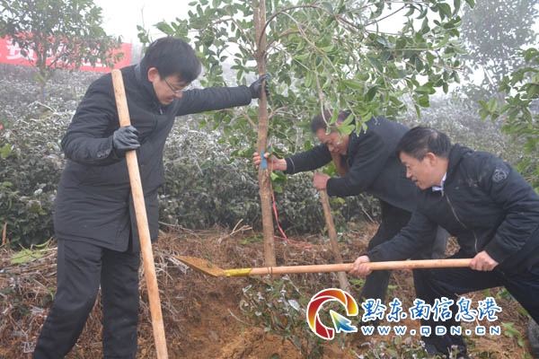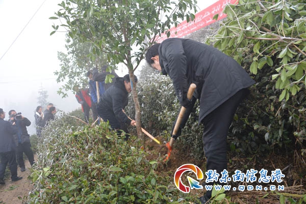 本網訊 2月11日(農歷正月初七)節后第一天,雷山縣開展以“建設多彩貴州·走向生態文明新時代”“進一步加強生態茶園綜合利用助推脫貧攻堅”為主題的2019年義務植樹活動。當天,由雷山縣委、縣人民政府組織縣直機關單位黨員領導干部160多人到望豐鄉三角田村跑馬道公路上茶葉基地內義務栽植“桂花樹苗”278棵。