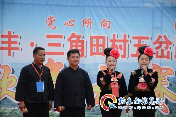 本網訊 為期兩天兩夜的雷山縣望豐鄉三角田村五岔路“爬坡節”原生態苗族歌謠大賽于5月11日早晨6點30分圓滿落幕。來自臺江縣苗族歌手歐住伍組合勇奪本次情歌自由組合唱和情歌循環對唱大賽“最美好聲音”第一名和第二名,領走了兩張錦旗。