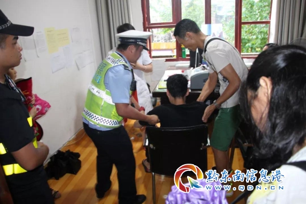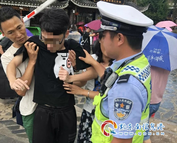 當(dāng)日,正值西江千戶苗寨景區(qū)暑期旅游高峰,正在西門服務(wù)區(qū)疏導(dǎo)交通的交警王國強同志接到游客求助,一名年輕男子突然渾身不適,出行暈厥現(xiàn)象,情況比較緊急,家屬向正在路上執(zhí)勤的交警求助,王國強立即向指揮中心進行匯報,并按指示立即送醫(yī)救治。