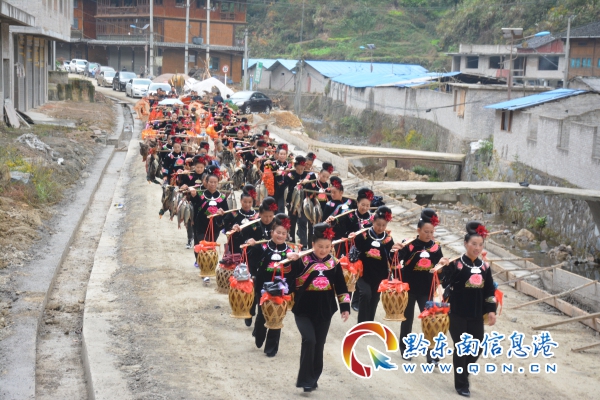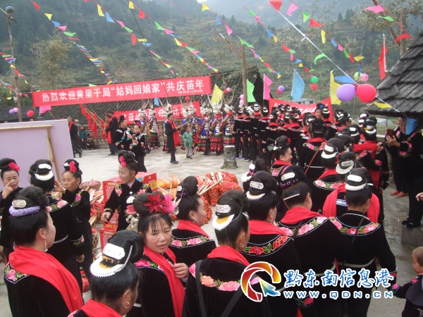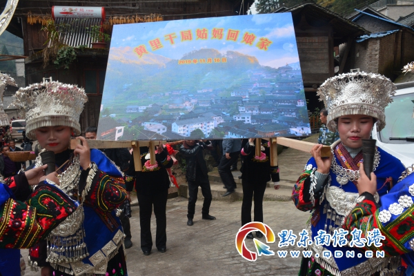 乘坐飛機趕回來。筆者隨行采訪一位26歲的中年“姑媽”名叫楊普保。她說, 2014年外出打工,在福建省福建凱鑫酒店工作,2016年1月與該酒店陳恩“小老板”結了婚。“我們在福建的4位姑媽聽到家鄉今年苗年節黃里干局苗寨組織“姑媽”回娘家過苗年的好消息,十分高興,各與自己的丈夫說,得到丈夫們的支持,為了提前趕到隊伍,我和丈夫及三位姑媽共5人,于11月12日上午8點30分,從福建乘坐飛機兩個半小時到達貴陽,并坐客車從貴陽高速直達雷山黃里,實現了福建到雷山的“一日游”。楊普保興奮地說。