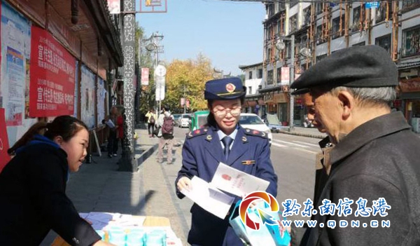 圖為執(zhí)法人員上街宣傳場(chǎng)面