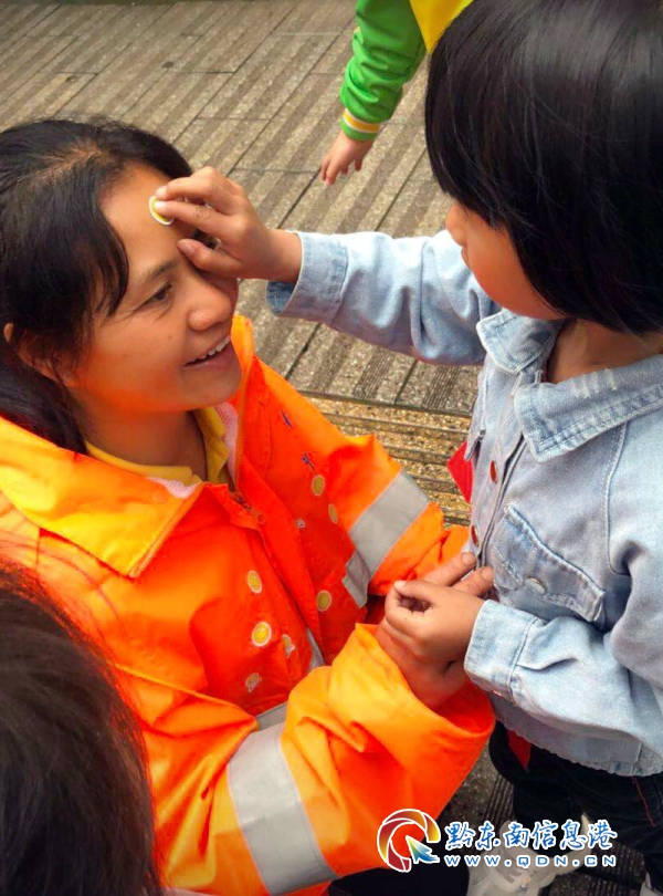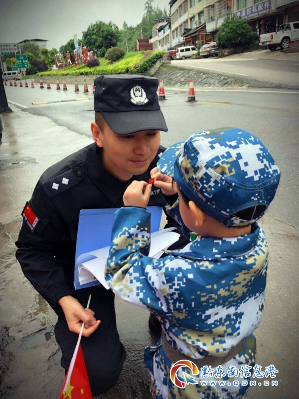 在“五一勞動節”到來之際,麻江縣童之夢幼兒園為了培養孩子熱愛勞動、懂得尊重勞動者、愛惜勞動成果的觀念,舉辦了一次“五一節向勞動者祝福”實踐活動,帶領孩子們走訪了正在執勤的特巡警、環衛工人、出租車司機等不同行業的勞動者。在公安執勤點,小朋友們整齊列隊,舉起稚嫩的小手,認認真真的向辛勤工作的特警隊員敬了一個軍禮,特警隊員也莊重的向孩子們回了一個軍禮,隨后,小朋友們還給執勤的特警隊員額頭上貼上了一個充滿敬愛之情的小紅星。其情其景,充分顯示了人民警察為人民、人民警察人民愛的魚水情誼,體現了人民警察在孩子們心中英雄形象。