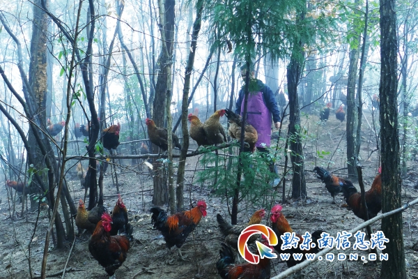 為了規(guī)模發(fā)展,駱科國一次性購進土雞苗5000只,實行天然散養(yǎng),讓雞群在山里自由活動覓食草蟲,早晚喂些從當?shù)卮迕窦依镔徺I的玉米、稻谷和米糠等粗料。他和妻子李顯美通過9個月的精心管理,目前,小雞已經(jīng)長成了5斤左右的商品土雞。這些“生態(tài)”土雞生龍活虎,地上、樹上、屋前屋后都能看到雞群,成了大山里一道特別的風景線,吸引了貴陽、凱里、都勻等地的酒店老板、市民驅車前來購買。