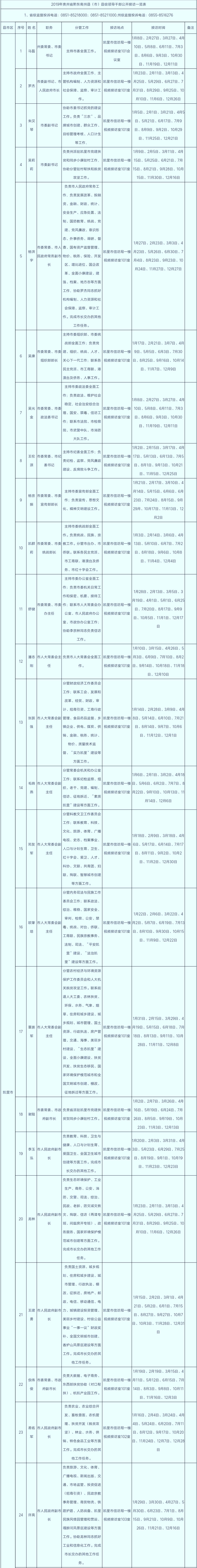 1月3日,記者從黔東南州政府網(wǎng)獲悉,方便群眾就地表達(dá)訴求,降低群眾訴求成本,及時(shí)就地化解矛盾糾紛和信訪問(wèn)題,真正解決好人民群眾最關(guān)心最直接最現(xiàn)實(shí)的利益問(wèn)題,2019年貴州省黔東南州縣(市)縣級(jí)領(lǐng)導(dǎo)干部公開接訪表已發(fā)布。(應(yīng)騰)