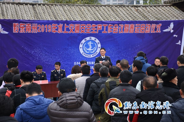 本網訊 為創建水上交通平安祥和的春運環境,督促廣大航運公司(船員)切實做好春運期間水上交通安全生產工作,2019年1月22日,黔東南州水上交通春運啟動儀式在劍河縣柳川碼頭成功舉辦,出席儀式的有黔東南州地方海事局、黔東南州航務管理處和劍河縣人民政府相關領導,劍河、黎平和錦屏3縣海事、航務部門工作人員,劍河轄區內2家航運公司職工等共計60余人。啟動儀式主要圍繞突出船舶檢查、狠抓船員管理、強化隱患整治和加強現場執法等4項工作展開,詳細安排了全州春運期間水上交通安全生產工作,航運公司并對完善落實春運工作進行了表態發言。