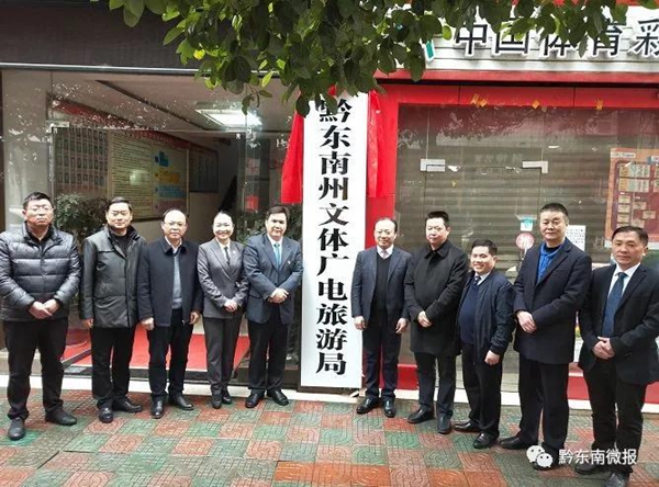 1月28日,黔東南州文體廣電旅游局舉行掛牌儀式。根據《黔東南州機構改革方案》和州委十屆六次全會部署,整合州文體廣電新聞出版局(州版權局)的文化和廣播電視管理職責、州旅游發展委員會和州體育局職責,組建黔東南州文體廣電旅游局,作為州政府工作部門,不再保留州文體廣電新聞出版局(州版權局)、州旅游發展委員會和州體育局。州委常委、州人民政府副州長鄭秀全出席并講話。黔東南州文體廣電旅游局領導班子、副科級以上干部和局直屬事業單位主要負責同志參加掛牌儀式。