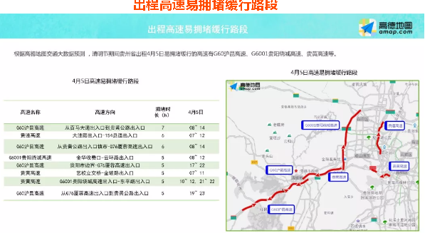 高速擁堵方面,預(yù)計(jì)4月5日9點(diǎn)至12點(diǎn)為高速出程擁堵高峰;返程較為平穩(wěn),15點(diǎn)至18點(diǎn)為短時(shí)擁堵,不影響通行。
