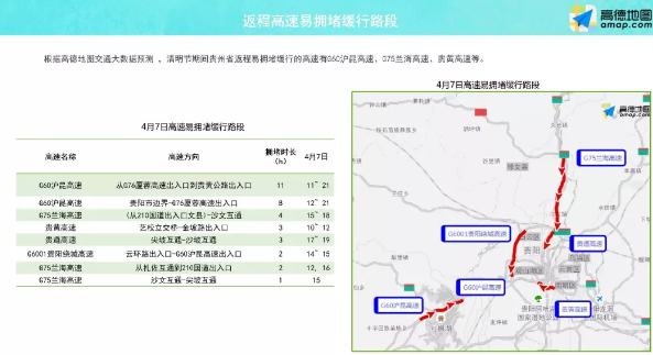 G60滬昆高速:G76廈蓉高速出入口至貴黃公路出入口,擁堵時(shí)間為11點(diǎn)至21點(diǎn)。
