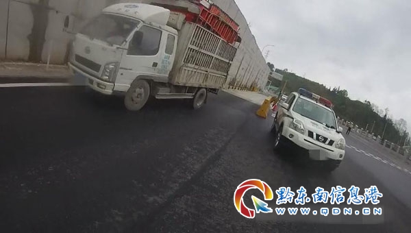 本網訊 4月14日早間10時許,黔東南州公安局交警支隊高速三大隊民警,在轄區(qū)執(zhí)勤崗點開展交通秩序大整治。工作中,民警發(fā)現一超高貨車,貨車頂部超高超長,民警隨后將該白色貨車攔下。
