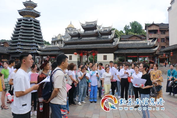 在當天上午的培訓過程中,龍佳圍繞“中國最‘正’導游”設置學習專題,在培訓內容上熟練運用“才藝導游法”,巧妙結合當地傳統樂器、傳統歌唱方式、特色民族服飾和少數民族語言,言傳身教地為150名學員開展了專題講座和互動交流。當天下午,經過精心挑選的50名學員在龍佳的帶領下走進凱里市下司古鎮景區,結合景區內人文景觀、非遺文化開展了現場實操培訓。第一階段由龍佳變身導游在每一處標志性景點現場講解,并貫穿了導游必須掌握的工作要領;第二階段進入分組學習和討論環節,在五個組別中分別推選兩人進行下一階段的現場考核;第三階段在對推選的10位優秀學員依次現場考核后,由龍佳分別作出客觀的點評;第四階段是為10位優秀學員頒發榮譽證書,以此鼓勵學員們強化專業知識學習,堅定未來發展方向。這樣的培訓既增加了游覽趣味,又展示了才藝風貌,其精彩的授課內容和培訓方式贏得學員的陣陣掌聲。學員們紛紛表示受益匪淺,開闊了眼界,進一步增強了走最“正”導游路的信心。