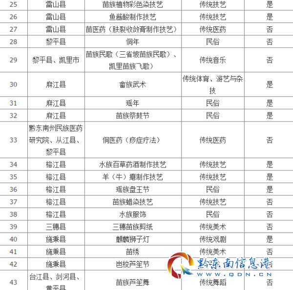 6月4日,貴州省人民政府公布了第五批省級非物質(zhì)文化遺產(chǎn)代表性項(xiàng)目名錄,全省共計(jì)224項(xiàng)315處,其中新增項(xiàng)共152項(xiàng)174處,擴(kuò)展項(xiàng)72項(xiàng)141處。黔東南州入選52項(xiàng)64處,入選總數(shù)占全省23%,位列全省前茅,其中新增項(xiàng)26項(xiàng)27處,占全省新增項(xiàng)的17%,擴(kuò)展項(xiàng)26項(xiàng)37處,占全省擴(kuò)展項(xiàng)的36%。截至目前,黔東南州共有省級非遺代表性項(xiàng)目218項(xiàng)306個(gè)保護(hù)點(diǎn),位列全省第一。