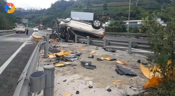 當高速二大隊民警到達現場后,現場一片狼藉,由于駕駛員及其妻子已經被送往醫院,高速二大隊現場民警分成兩組,一組前往甕安縣人民醫院察看人員情況,一組勘察現場。當高速二大隊民警到達醫院后,駕駛員黃某及其妻子已經做好檢查,經詢問醫生得知情況良好,只是其妻子需要臥床靜養一段時間。
