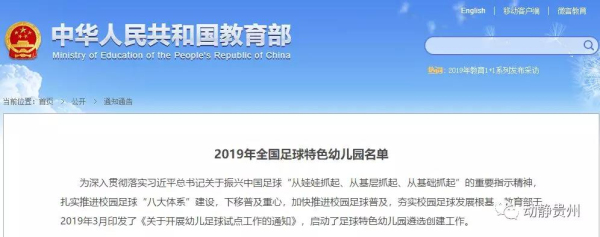 據了解,為深入貫徹落實習近平總書記關于振興中國足球“從娃娃抓起、從基層抓起、從基礎抓起”的重要指示精神,扎實推進校園足球“八大體系”建設,下移普及重心,加快推進校園足球普及,夯實校園足球發展根基,教育部于2019年3月印發了《關于開展幼兒足球特色幼兒園試點工作的通知》,啟動了足球特色幼兒園遴選創建工作。在有關單位自主申報、各級教育行政部門審核推薦的基礎上,教育部對各地推薦的足球特色幼兒園進行了綜合評定,認定并命名3570所幼兒園為全國足球特色幼兒園。