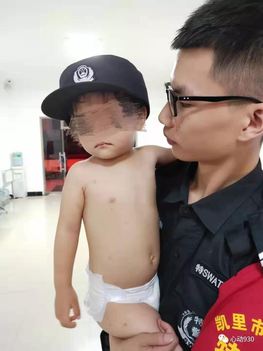 原來,當天凌晨1:05分左右,凱里市公安局特巡警大隊西門網格隊員張淞,余成,梁海龍接群眾報警,在電廠新村附近有一名2歲左右的男童與家人走散。