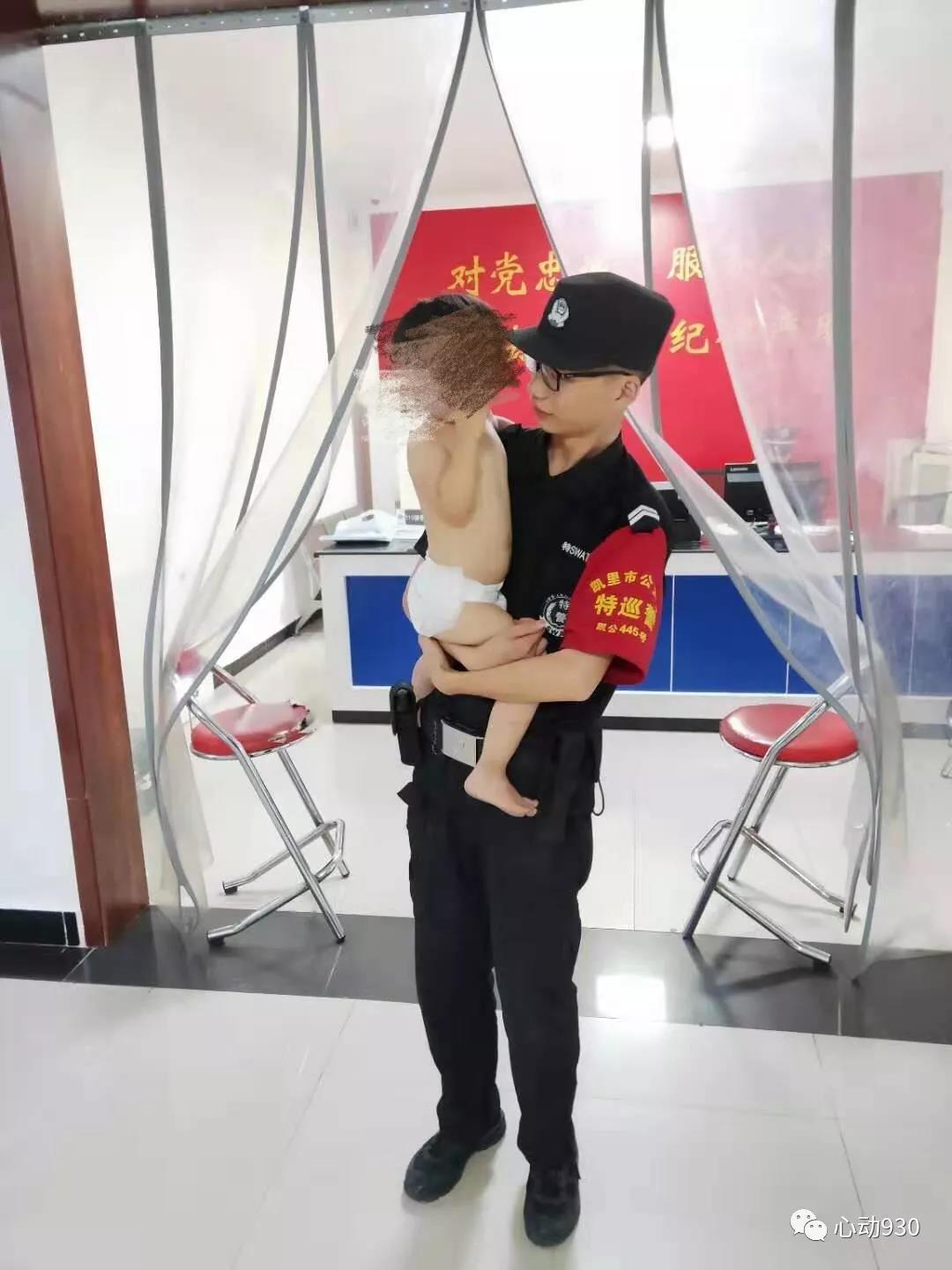 由于時間太晚,再加上孩子穿的太少。無奈之下,幾名隊員決定先把孩子帶回西門派出所。跟小孩“對上眼”的梁海龍被指定當起了“臨時奶爸”,一邊要給小孩把屎把尿,一邊要陪他玩游戲,沒一會兒梁海龍已是滿頭大汗。
