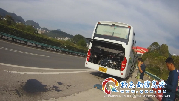 現場民警迅速將車上乘客疏導至相對安全的隔離護欄外后,決定實施兩套施救方案,民警一方面讓導游聯系旅游公司派客車轉運游客,民警一方面聯系凱里東站附近的專業汽修廠,趕往現場替大巴車更換破損的機油格。爭取用最短的時間將游客送至下司古鎮,避免影響到游客們的行程。