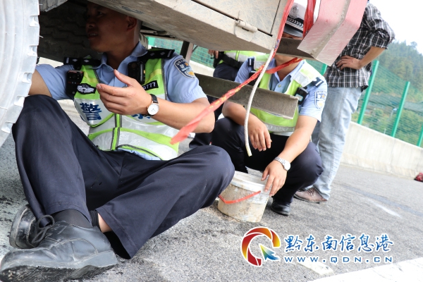 10月7日深夜2點20左右,黔東南州公安局交警支隊高速六大隊一中隊接到司機報警稱,在廈蓉高速黔東南榕江縣境內喬果山隧道內,車道上灑落大量異物,安全隱患相當大,請出警處置。