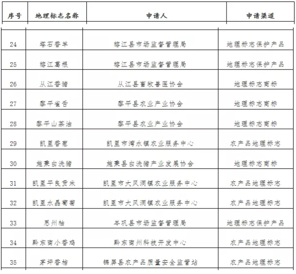 黔東南州地理標志獎勵名單