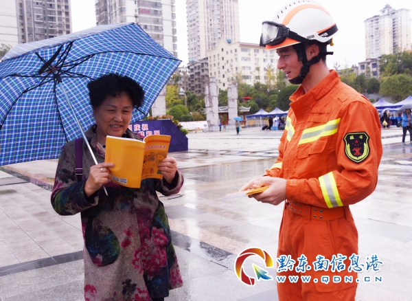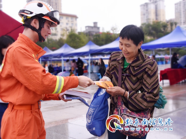 此次宣傳活動,黔東南支隊共發放消防知識宣傳單500余份,消防水杯500余個,消防圍裙200余條、消防常識手提袋200余個、消防雨傘200余把,為“國際減災日”群眾安全意識的提升加油助力。(李欣)