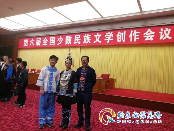 陳永忠(左)、石慶慧(中)、姚瑤(右)3人在第六屆全國少數民族文學創作會議會場合影留念。