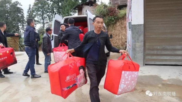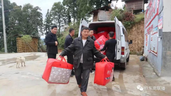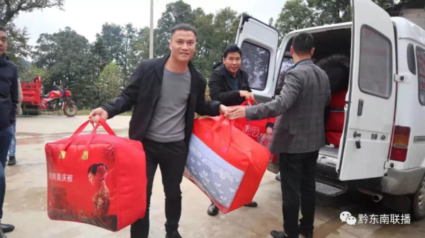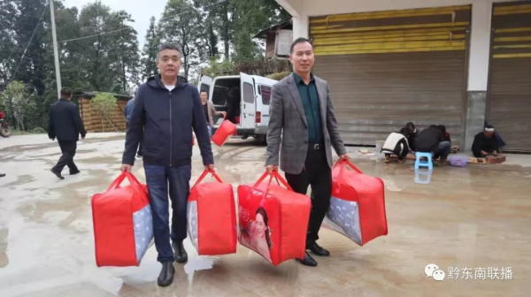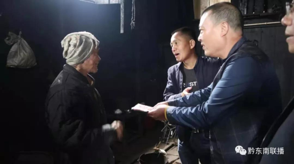 林國(guó)強(qiáng)一行走村串寨,給貧困戶分別送去500元的慰問(wèn)金和棉被