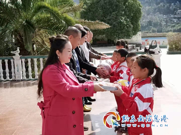 課間,在該校操場舉行捐贈儀式,民進(jìn)州、市各支部負(fù)責(zé)人為孩子們送上書包、圖書、籃球、排球、羽毛球拍、跳繩、乒乓球拍等學(xué)習(xí)和文體用品。民進(jìn)黔東南州委專職副主委彭暉作發(fā)言,她強(qiáng)調(diào)開展“不忘合作初心,繼續(xù)攜手前進(jìn)”主題教育的意義,對該校的教育教學(xué)工作給予了肯定,并感謝學(xué)校對此次活動的大力支持,希望老師們扎根基層,愛崗敬業(yè),孩子們愉快學(xué)習(xí),健康成長,長大后成為對社會有用的人。