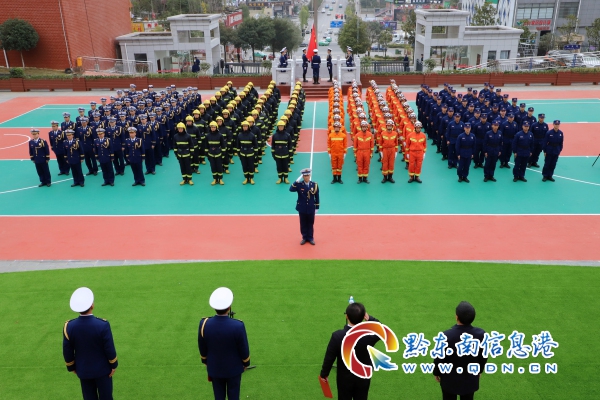 州政府副州長、州公安局局長楊秀澗代表州委、州政府對州消防救援支隊順利掛牌表示熱烈的祝賀。他指出,改革轉隸以來,全州消防救援隊伍能夠嚴格按照總隊、州委、州政府工作部署,對標“兩嚴兩準”紀律部隊建設標準和應急救援“主力軍、國家隊”職能定位,經受住了劍河“10·6”火災、新中國成立70周年消防安保等一系列重大災害處置和重要安保任務的實踐考驗,最大限度保護了人民群眾生命財產安全,工作業績值得充分肯定。他要求,全州消防救援隊伍要以此次掛牌為契機,一要提升政治站位。始終堅持從增強“四個意識”、堅定“四個自信”、做到“兩個維護”的政治高度,推進應急救援管理體系和能力現代化建設工作。二要堅持底線思維。深入開展安全生產集中整治和冬春火災防控工作,高標準做好“兩節”、“兩會”的消防安保工作,確保萬無一失。三要打造過硬隊伍。始終堅持紀律部隊建設標準,落實“五個不動搖”建隊要求,隨時做好搶大險、救大災的應急準備,確保關鍵時刻“拉得出、沖得上、打得贏”。