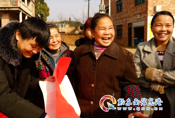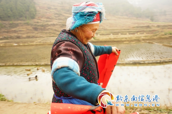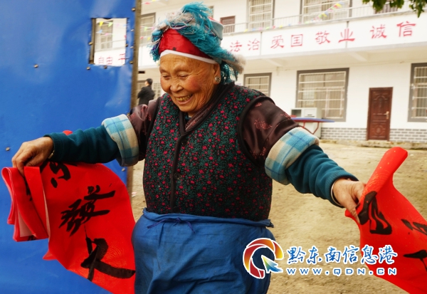 苗族老奶奶開心地拿著春聯回家啦