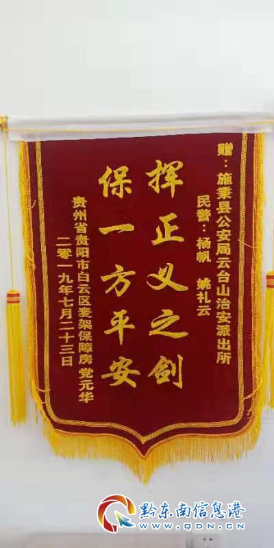 因此,才出現(xiàn)開頭一幕,黨先生專程從貴陽(yáng)前往施秉縣將錦旗送到施秉縣公安局民警手中當(dāng)面致謝。黨先生發(fā)自肺腑的說(shuō),雖然不屬于案件,但景區(qū)的民警能夠廢寢忘食的幫助查找,平凡中孕育著偉大,由衷的敬佩和感激漂城施秉的民警。(楊帆、楊茂琴)